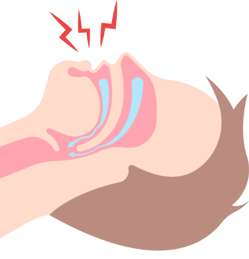 寝ている間に呼吸が止まる・弱くなる状態が繰り返される病気です。代表的ないびきの原因で、朝のだるさや日中の強い眠気、集中力低下につながります。放置すると高血圧、動脈硬化、心不全、不整脈、脳心血管イベントのリスクも高まることが知られており、早めの検査と適切な治療が大切です。